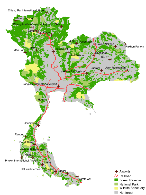 Submit a new request to get all the layers and see the final result. Since we have embedded the legend, then it automatically shows as part of the map image. You should get an image like the one shown in 1.